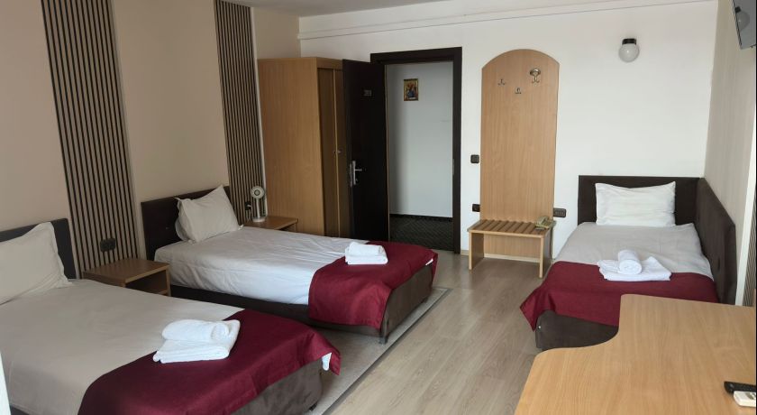 ·  Când am intrat în camera se simțea un miros urat. Toaleta deși avea sigiliu pus nu era curățata cum trebuie. Partea mecanica a rezervorului de wc este defecta,rămâne blocată. Ventilatorul este foarte zgomotos. Circuitul de iluminat cu întrerupătoare cap scara prost legat ( sunt electrician de meserie ). Consider că cel care lucrează la recepție trebuie sa fie in stare să-ți ofere informații complete legat de orientare în oraș sau firme care oferă trasee turistice. Eliberarea camerei ar trebui sa se facă la ora 12. Într-o seară târziu cu continuare a doua zi dimineața devreme cred că sau mutat niste mese in urma unei petreceri pentru că se auzea , zgomot de mese și scaune tarate și tropăituri.